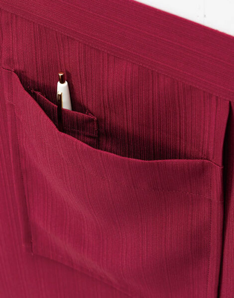 特長:退色防止、腰紐取り外し可能、右腰吊るしポケット、内側ペン挿しポケット付き |