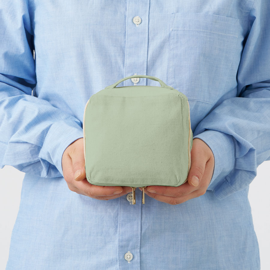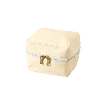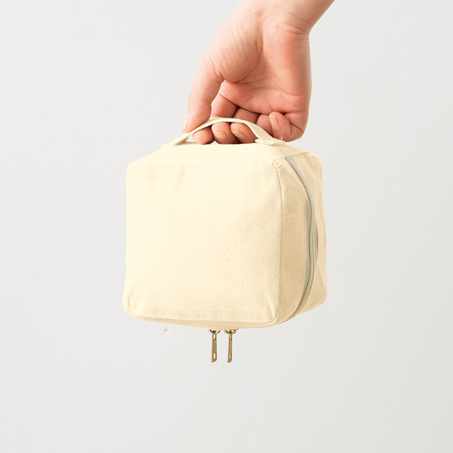 特長:ファスナーをぐるりと大きく開けられる仕様で、 ものの出し入れがしやすい、持ち手付きスクエアポーチです。 小さめの小物を入れるのに最適なサイズ感です。