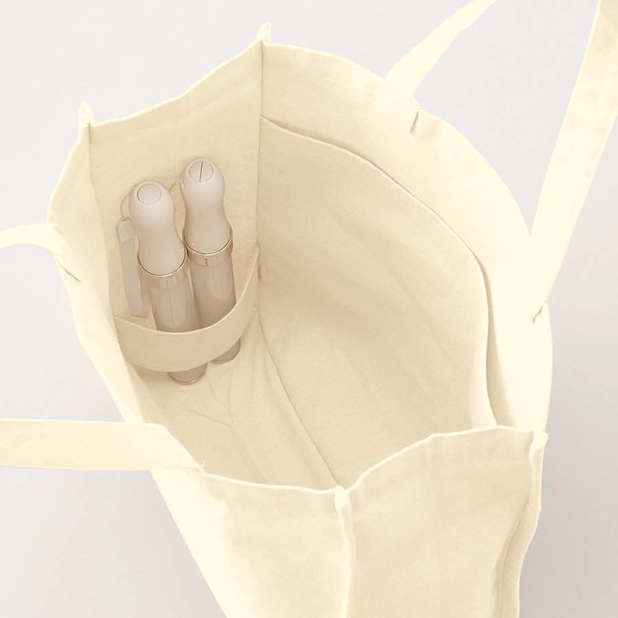 特長:仕切りポケット付きの便利なトートバッグです。 中にはペンライトやペットボトルの収納ができる 仕切りポケットがついています。